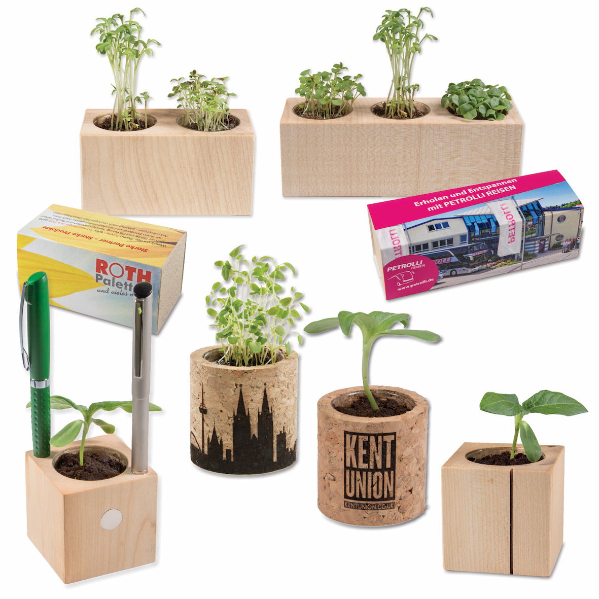 Emotion Factory offers products for planting, made of natural materials. Filled with a compressed potting soil pellet and a choice of different seed varieties, they can be used to convey a promotional message printed in full colour (on the sleeve), engraved or pad printed (on the pot). Building on its success, the brand is launching planting sets, with natural wooden pots with two or three compartments, made in Europe from sustainable raw materials. A 100% green product!