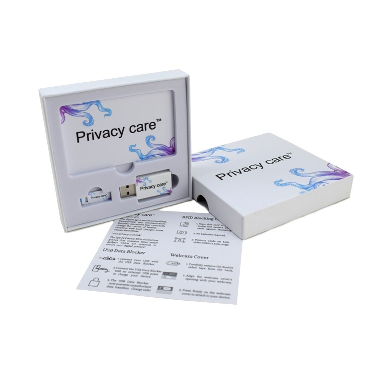 Much more than a PC accessory kit, the three objects that make up this product guarantee optimal security. The Pro Webcam Cover (ref. 6871) prevents webcam hacking. The RFID Card (item no. 6711) protects against unauthorized reading of the credit card. Finally, the Stop’n Sync adapter (item no. 6823) protects the computer against data theft and viruses. The kit’s packaging box is customizable.