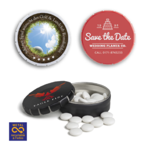 The company Areka, a French specialist in customizable confectionery, has been at the origin of the 45 mm clic clac box (infinitely recyclable metal) since 1994. This 100% French product is manufactured by the company Boudeville et Fontaine, certified “Origine France Garantie”. The sweets are also made in France. As the manufacturing units are located in France, delivery is possible at short notice.