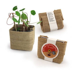 Ideal for a touch of nature, this complete planting kit is closed with a personalized four-color band for a large communication area (optional marking by serigraphy or transfer to the pot cover). Resistant, malleable and self-supporting, this jute canvas pot cover will thus be able to receive the bag containing your plants. Easy to use, just add a little water to rehydrate the soil and sow the seeds. These GMO-free seeds, from the latest harvests and guaranteed germination, meet European standards.